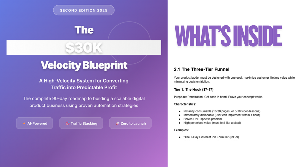 - The Three-Tier Funnel: Stop selling single products. Learn the exact Tier 1 ($7-$17) to Tier 3 ($297-$497) ladder that multiplies your Average Order Value (AOV) by up to 4x (Chapter 2).